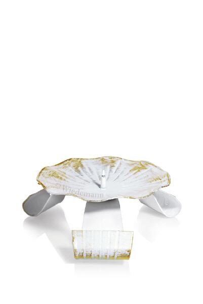 Kerzenhalter Dreifuß Eisen weiß/gold gelackt mit Dorn Ø 11 cm ideal für Taufkerzen, Kommunionkerzen