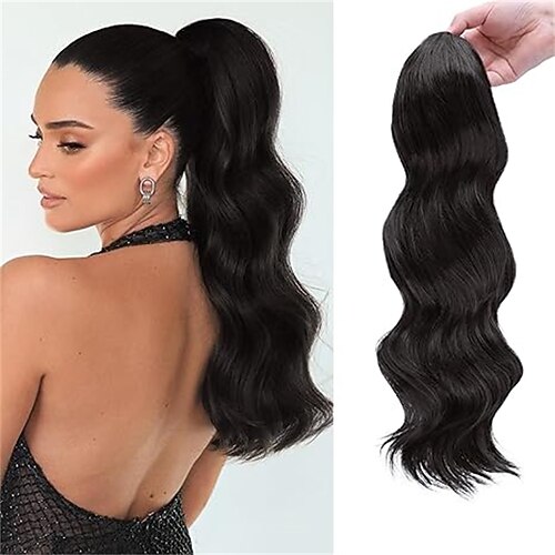 Haarverlängerung mit Haarclips, 50 cm lang, schwarz, lockig, gewellt, mit Haarclips für Damen, flauschiges, natürlich aussehendes Kunsthaarteil für den täglichen Gebrauch (50 cm, schwarz)