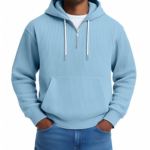 Per uomo Felpa con cappuccio Velluto a coste Felpa con cappuccio e zip corta Aalbicocca Rosso bordeaux Nero Bianco Blu marino Con Cappuccio Semplice Tasca a marsupio Testurizzato Casuale Quotidiano