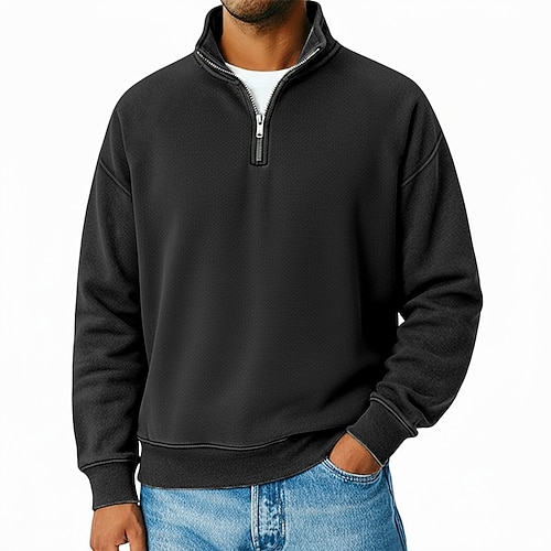Per uomo Maglia Felpa a nido d'ape Maglione Felpa con zip corta Aalbicocca Nero Bianco Verde chiaro Borgogna Colletto Mao Semplice Tasca a marsupio Testurizzato Casuale Quotidiano Sport Outdoor