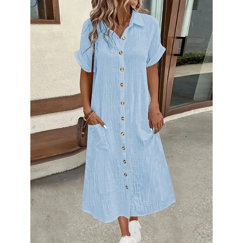 Women's Midi Dress Shift Dress Vacation Casual Daily Regular Fit Plain Short Sleeve Shirt Collar Black White Blue Summer Spring