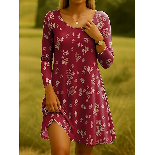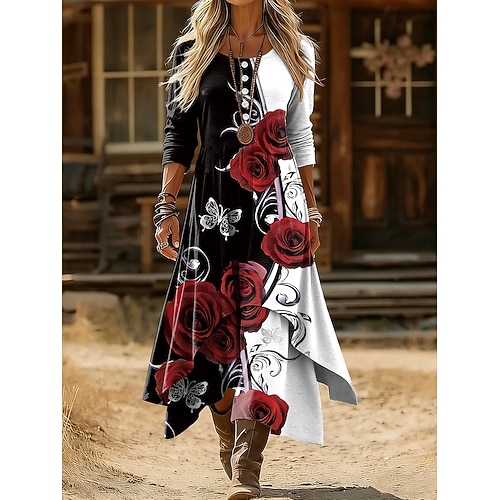 Per donna Abito Midi Abito a Tubino Casual Quotidiano Ferie Vestibilità regolare Floreale Grafico Manica Lunga Girocollo Blu Rosso Viola Verde Primavera Inverno