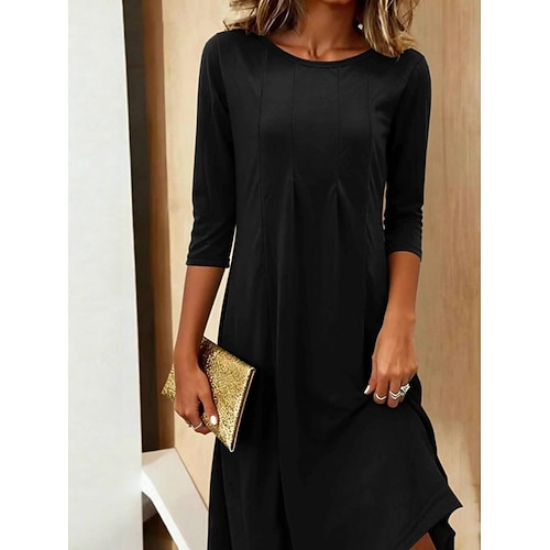 Per donna Abito Midi Abito a Tubino Casual Quotidiano Vestibilità comoda Semplice Manica 3/4 Girocollo Nero Vino Verde Blu scuro Estate Primavera Autunno