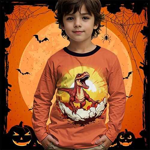 Halloween Jungen 3D Cartoon Dinosaurier T-Shirt Langarm Frühling Herbst Mode Basic Kinder 4-12 Jahre Rundhalsausschnitt Outdoor Lässig Täglich Normale Passform
