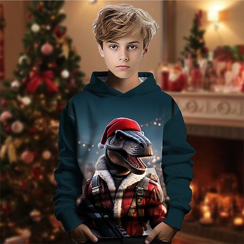 Weihnachten Jungen 3D Dinosaurier Kapuzensweatshirt Langarm Frühling Herbst Mode Streetwear Kinder 4-12 Jahre Mit Kapuze Outdoor Lässig Täglich Normale Passform