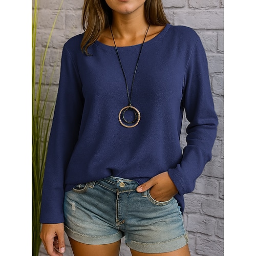 Per donna Maglietta Semplice Casual Manica Lunga Girocollo Top Regolari Quotidiano Verde primavera Nero Blu Reale Blu Grigio Primavera Autunno