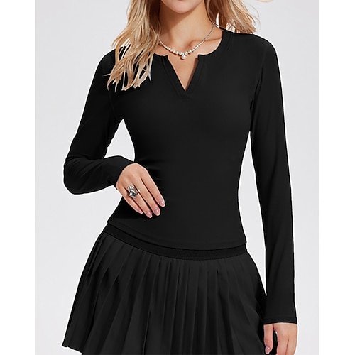 Per donna Tinta unita Maglia da tennis Top sportivo Elegante Elastico Traspirante Golf Pickleball Yoga Scollo a V Top Inverno Nero Bianco Giallo Abbigliamento da tennis