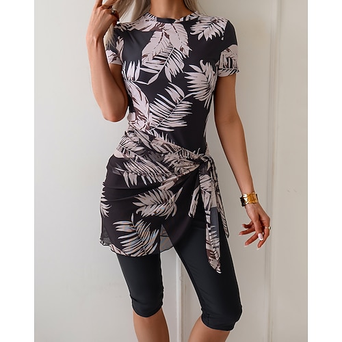 Per donna Top sottomuta Costume da bagno 2 pezzi Top sottomuta Floreale Costumi da bagno Blu Nero Protezione solare UPF 50 Surf Spiaggia Nuoto Estate