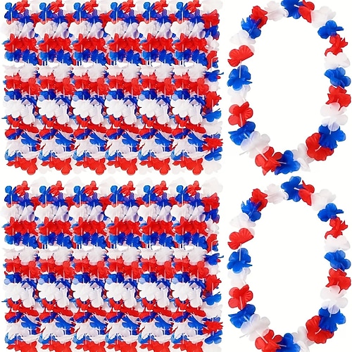 30 künstliche Blumen im patriotischen Stil – rote, weiße und blaue Hawaii-Leis mit Ananas- und Schildmotiv, Dekorationen zum 4. Juli, dem Unabhängigkeitstag, Großhandelsgeschenke für Partys im