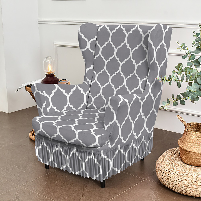 Wingback Chair Cover Floral Striped and Geometric Printed Polyester Slipcovers for Living Room Bedroom and Home Office
