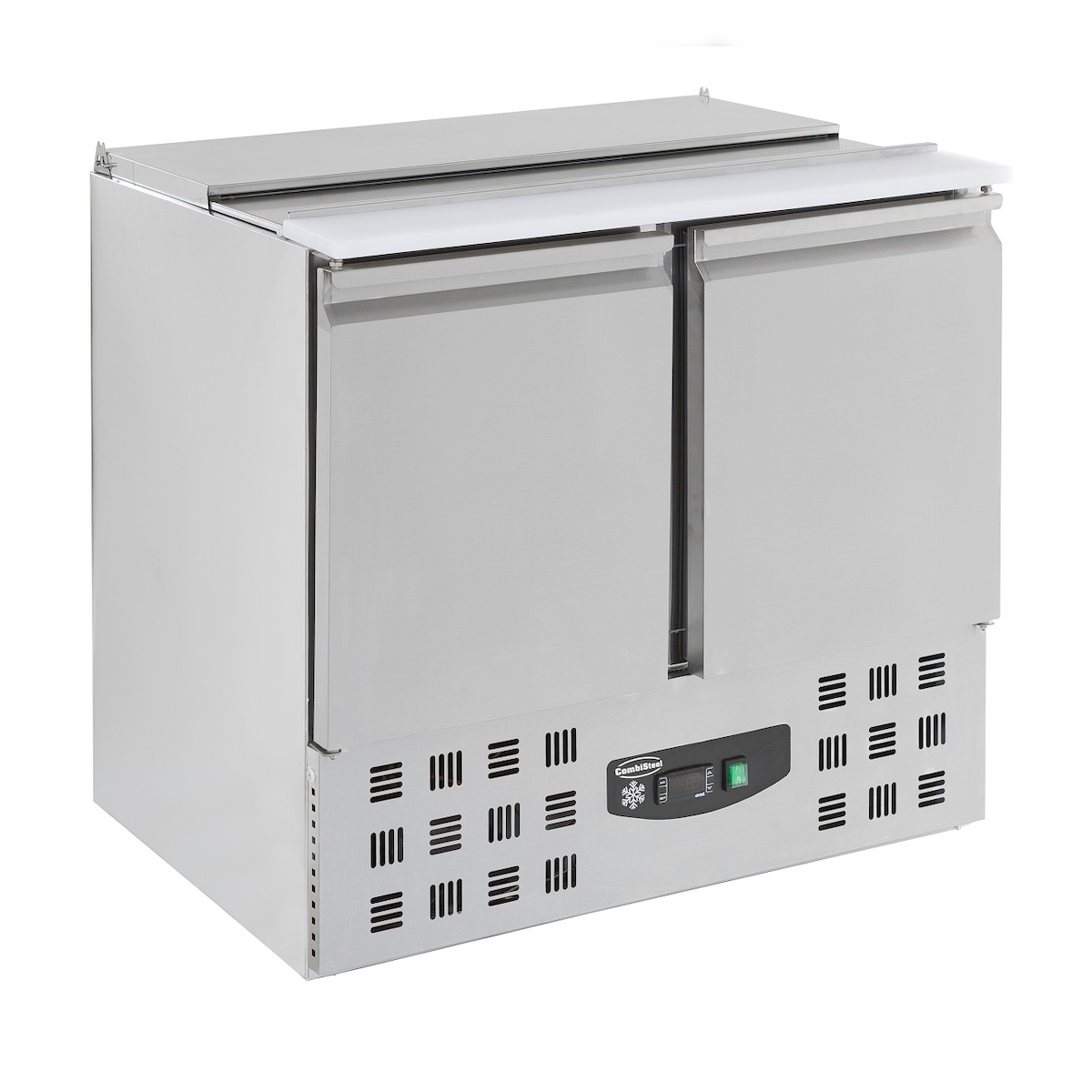 Gekühlte Saladette TOAD | 2x Tür | 2x 1/1 GN + 2,5x 1/1 GN | 230 Liter, HxBxT 87x90x70cm | +2/+8°C | Edelstahl | + CHEFGASTRO Geschirrtuch