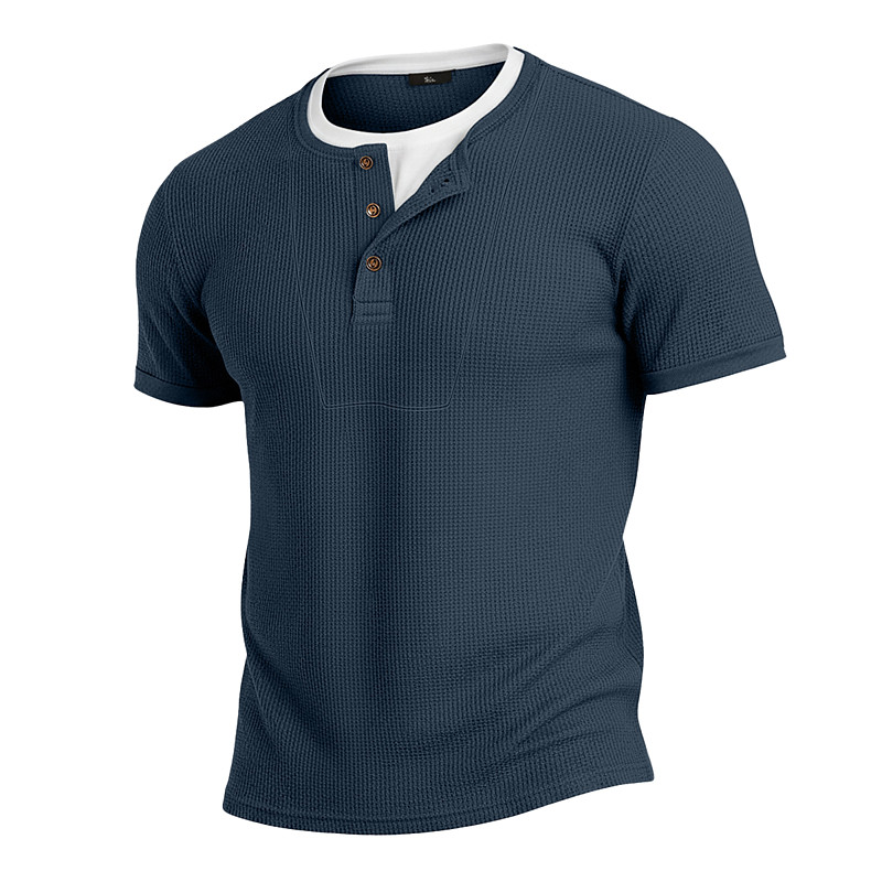 Men's Waffle Henley Shirt Tee Cotton Blend T-Shirt Short Sleeve Crew Neck Henley Summer Spring All Seasons Color Block Plain Textured Fashion Designer Casual Color Block Buttons Fake two piece Casual