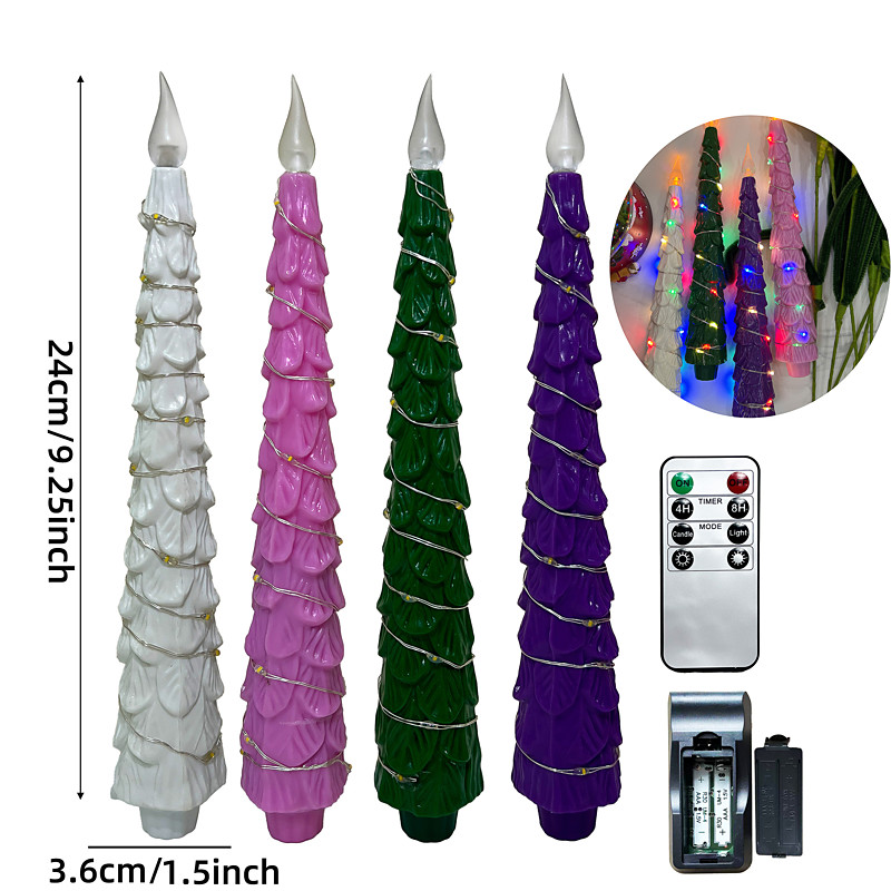 3/4 Pcs Christmas 2025 new LED Christmas tree long pole electronic candle light 24CM remote control AA battery indoor bedroom dining room party atmosphere decoration light decoration props