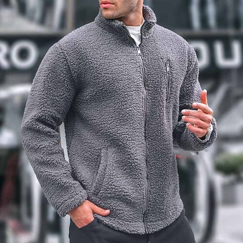 Per uomo Maglia Felpa con zip Felpa in pile Felpa con zip intera Aalbicocca Nero Bianco Grigio Colletto Mao Semplice Con zip Tasca Quotidiano Sport Outdoor Ferie Poliestere Streetwear Essenziale