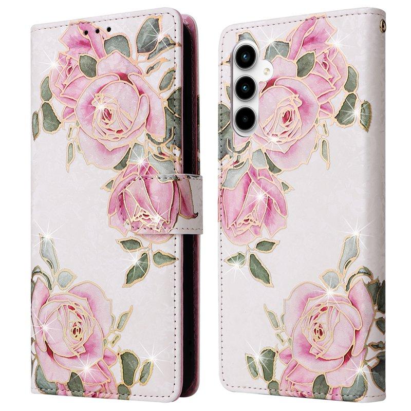 Samsung Galaxy A35 5G Fodral Äkta Läder RFID Skydd - Blomma
