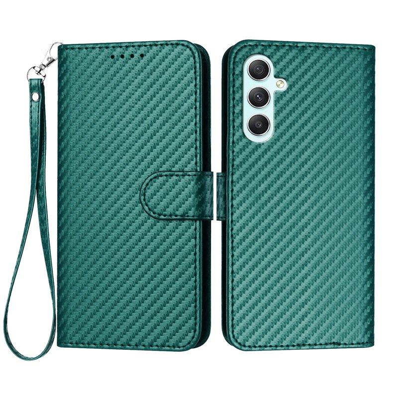 Samsung Galaxy A35 5G Fodral Läder Kolfiber - Svartgrön