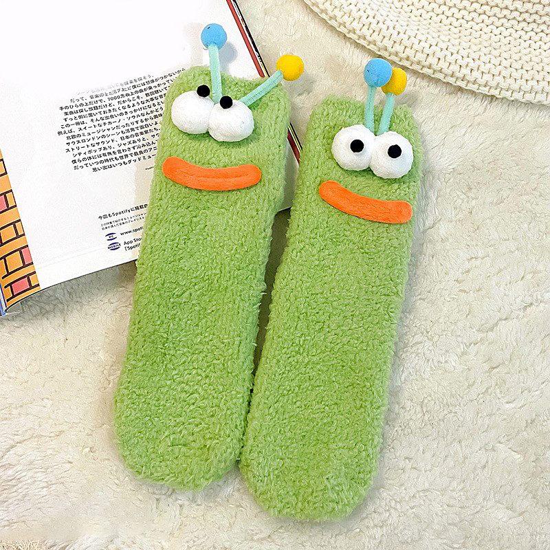 Unique and Funny Ugly Socks Fuzzy Monster Socks for Women, Soft Plush Alien Design Winter Warm Socks with 3D Eyes and Smile, Cozy Novelty Furry Slippers Socks for Home or Gift