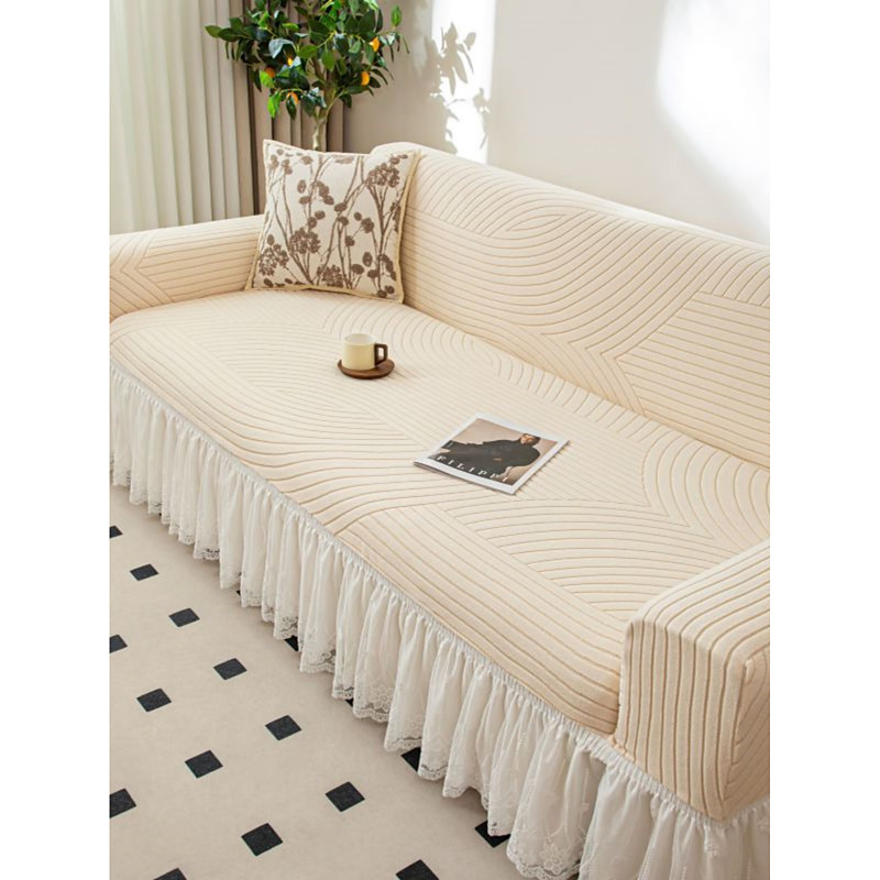 Elastic Skirt Edge Sofa Cover, Solid Color All-Season Universal Slipcover, Thickened Non-Slip Sofa Protector for High-End Look