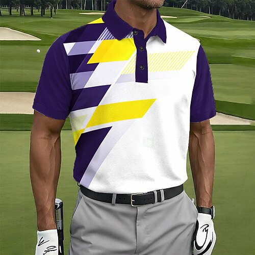 Per uomo Geometrico Golf Polo Sportivi Manica Corta Magliette polo Camicie con Colletto Casual Athleisure Bottoni Primavera Estate Blu Viola