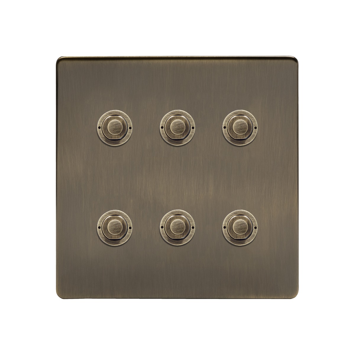 Soho Lighting Antique Brass 6 Gang 6A 2 Way Retractive Push Button Switch