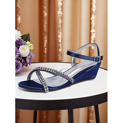 sandali con zeppa in strass blu da donna - eleganti tacchi a spillo con cinturino alla caviglia e punta aperta per feste ed eventi serali