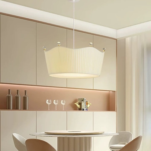 Lampadario A Led A Sospensione In Tessuto Plissettato A Testa Singola Lampadario Per Bar Sala Da Pranzo Showroom Lampadario A Sospensione Cavo, Bianco