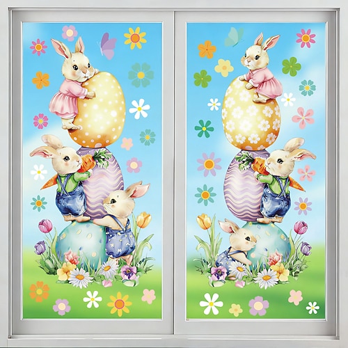 6 adesivi statici a tema pasquale, adesivi per finestre con conigli e uova di Pasqua, adesivi da parete per soggiorno, 3 confezioni da 2