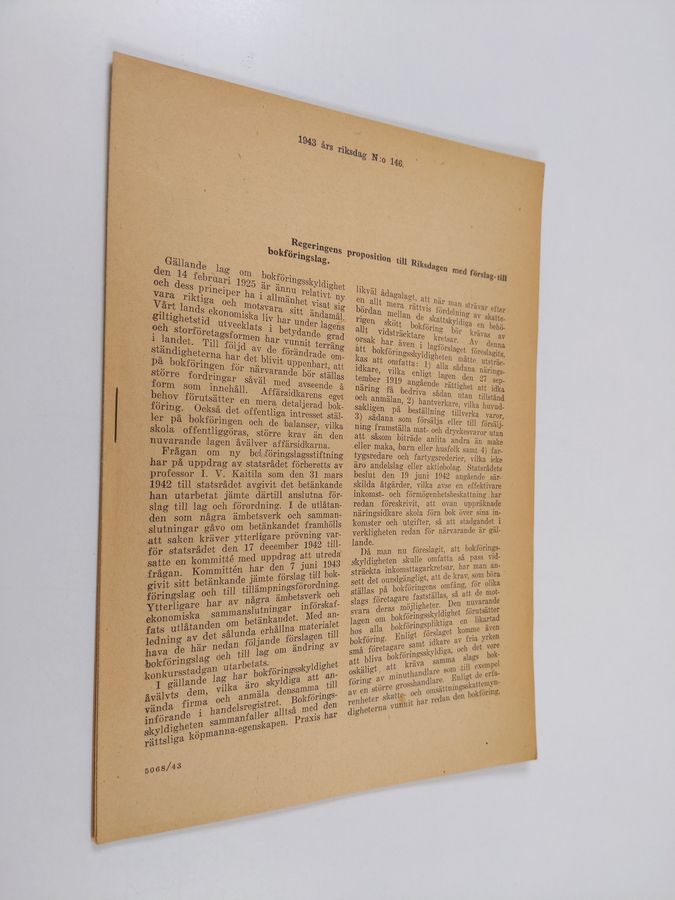 1943 års riksdag n:o 146 : Regeringens proposition till Riksdagen med förslag till bokföringslag
