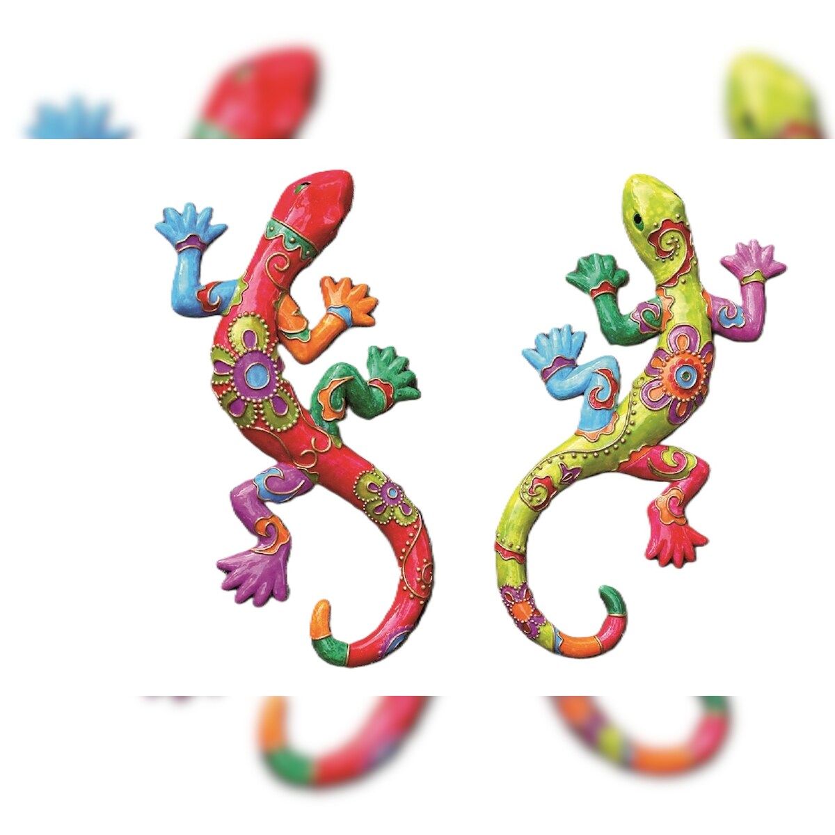 Salamander Eidechse Kunstharz Tier bunt Wand Hänger Set = rot+grün