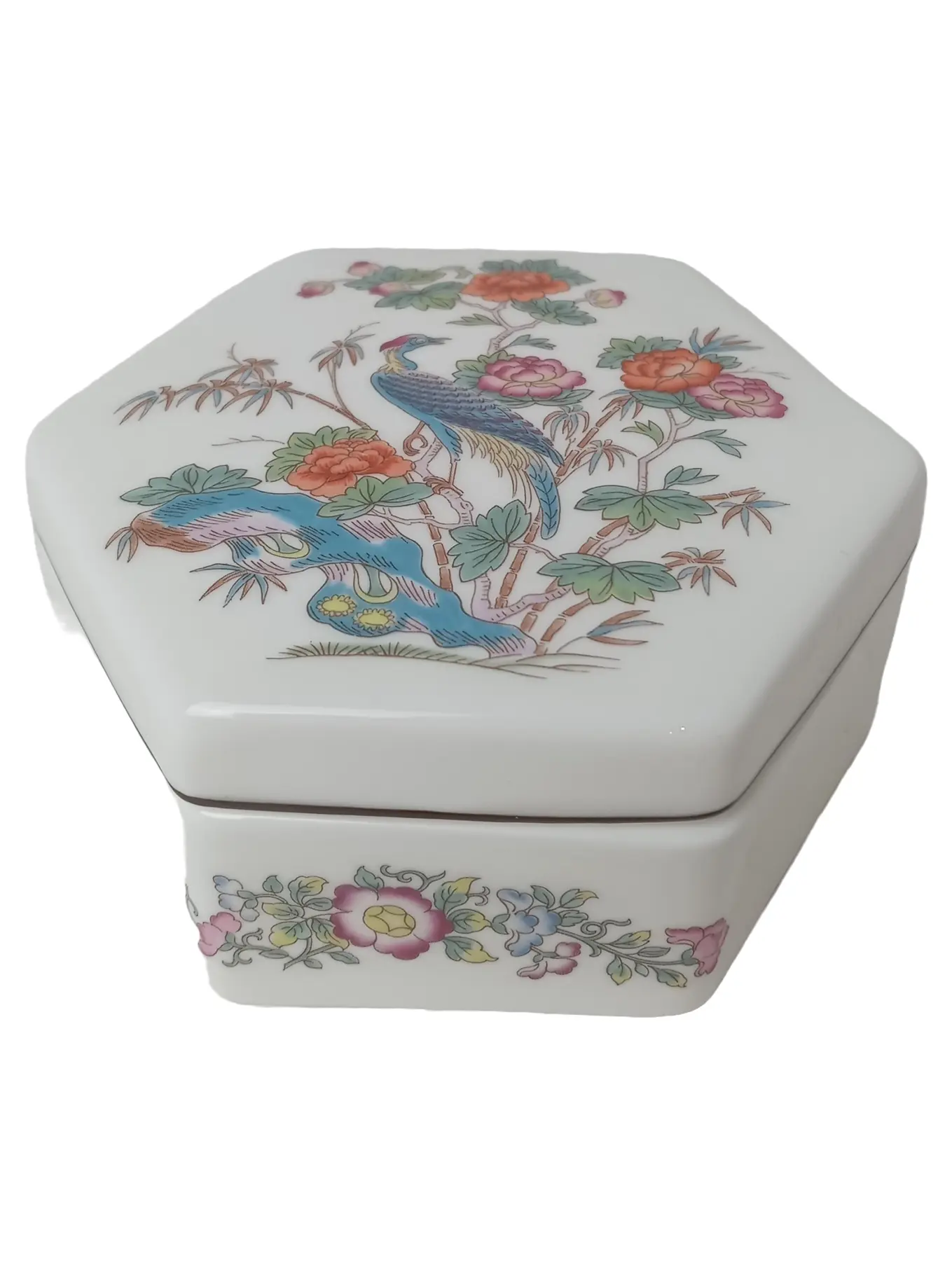 WEDGWOOD Kutani Crane Dekodose Bone China Bunt Sechseckig