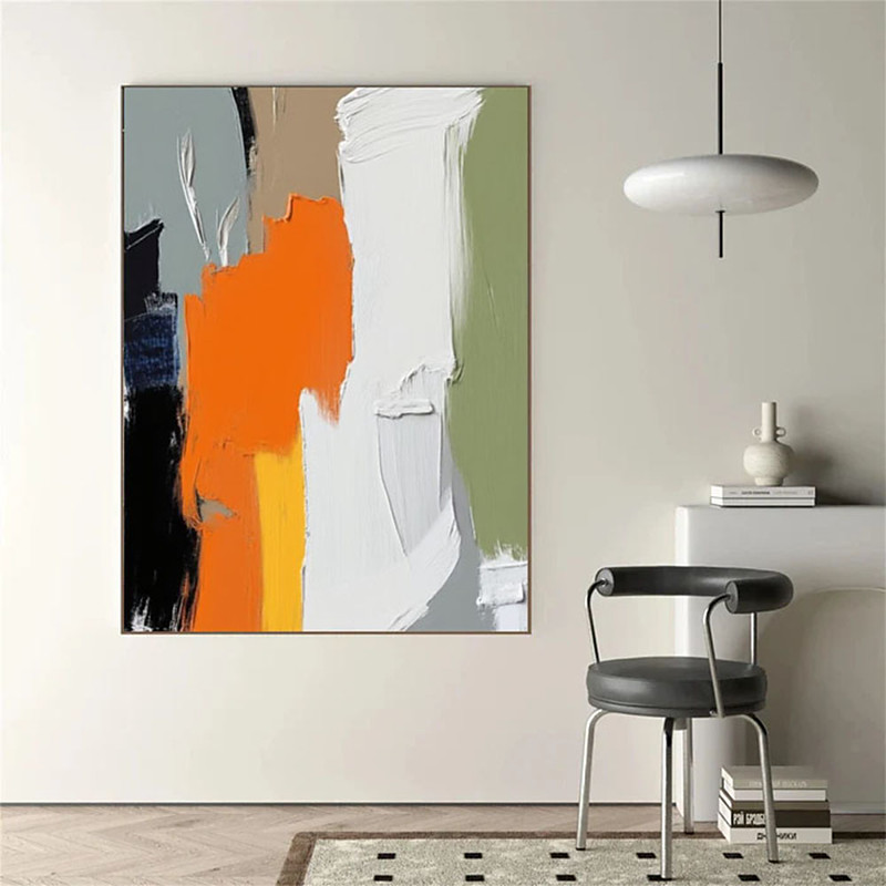 Original oil painting handmade Acrylic Abstract Painting Black White Orange Abstract Oil Painting Multicolor Canvas Painting Colorful Textured Wall Art Large Orange Wall Decor