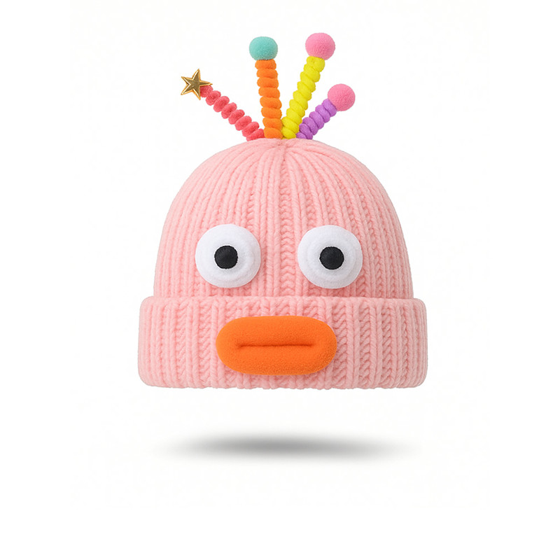 Women's Knit Yarn Mardi Gras Hat with Colorful Pom-Pom Hair – Available in Multiple Colors, Perfect for Carnival and Masquerade Parties