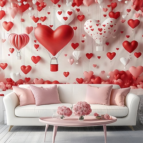 San Valentino arazzo Striscioni Coperta Rose Amore Cuori Carte francesi Carino Romantico 3D Da serata Soggiorno Sfondi di ripresa Decorazione per proposta di matrimonio Arredamento per la casa