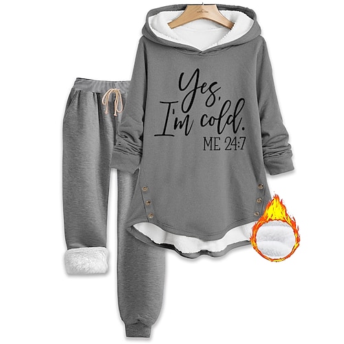 Completo pigiama da donna 2 pezzi felpa e joggers casual stampa frase per il freddo con rivestimento in pile comoda vestibilità inverno