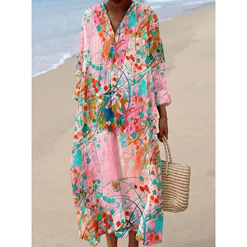 Per donna Abito maxi Abito a Tubino Casual Uscire Vestibilità comoda Floreale Grafico Manica Lunga Scollo a V Rosa Cachi Estate Primavera