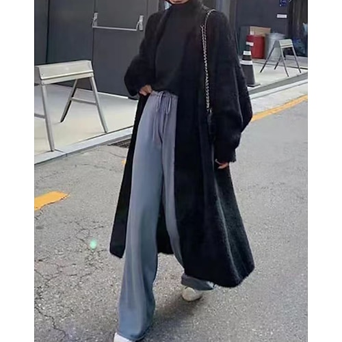 Per donna Felpa Cardigan Streetwear Casual Tinta unica Treccia Con Cappuccio Tasca Lavorato a maglia Manica Lunga Top lunghi Maglia Quotidiano Uscire Weekend Bianco Rosa Autunno Inverno