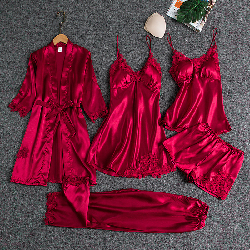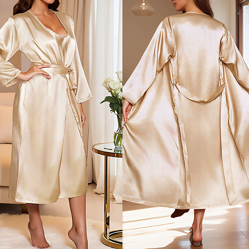 Women's Robe Casual Soft Satin Pure Color Lace Daily Home Bed Half Sleeve V Neck White Champagne Pink Wine Summer Loose Fit