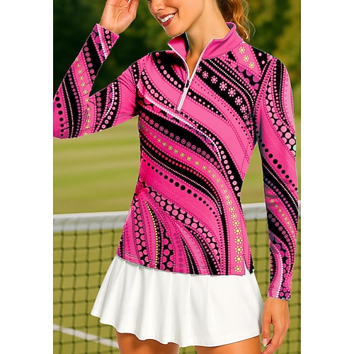 Per donna Geometrico Top Polo da golf Maglia da tennis Maglietta da tennis Manica Lunga Stampato Zip a un quarto Pullover Protezione UV Elastico Traspirante Pallavolo Tennis Golf Collo alla coreana