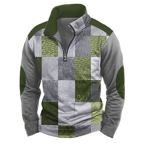 Per uomo Geometrico Plaid Felpa Casual Vintage Retrò Manica Lunga Collo Alto All'aperto Abbigliamento casual alla moda Rosso Blu Viola Verde Cerniera Zip a un quarto Autunno Inverno progettista S M L