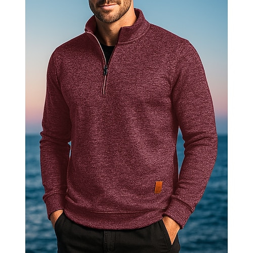 Per uomo Polo con zip Testurizzato All'aperto Uscire Collo ripiegato Zip a un quarto Manica Lunga Abbigliamento Sportivo Casual Tinta unica A righe Patchwork Cerniera Primavera Autunno Vestibilit