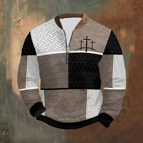 Per uomo Blocco di colori Croce Felpa con cerniera a un quarto Felpe Manica Lunga Felpa Collo con zip Vintage Retrò Stampa Ferie Uscire Stampato Autunno Inverno