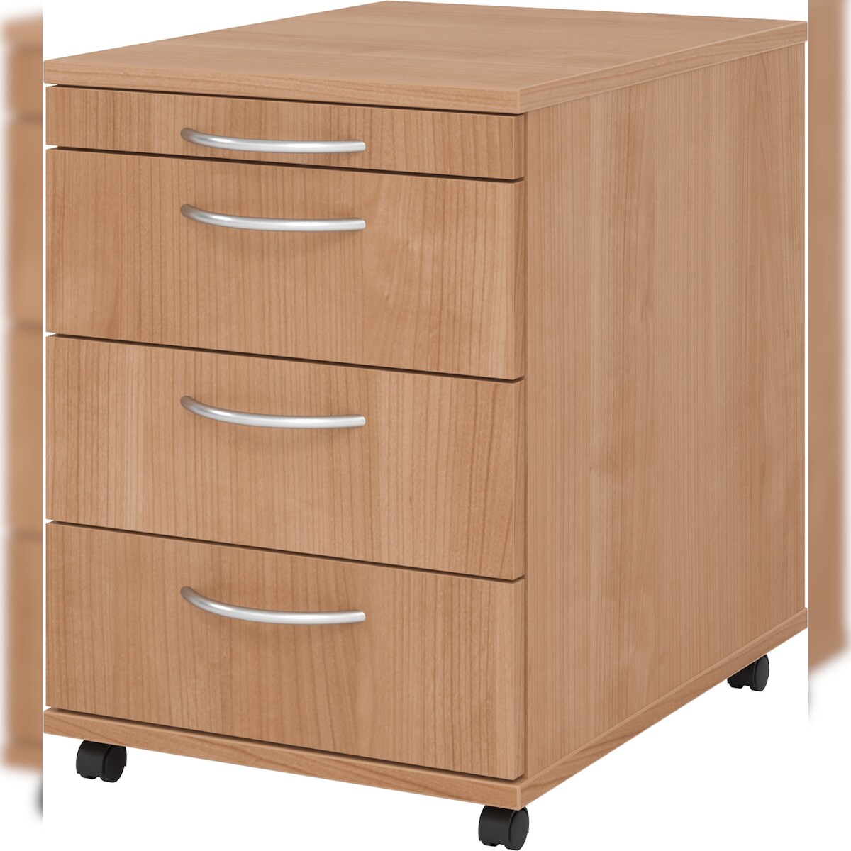 bümö basic Rollcontainer mit Schubladen, Container aus Holz in Nussbaum - Rollwagen für's Büro als Schreibtisch Unterschrank, Bürocontainer od.