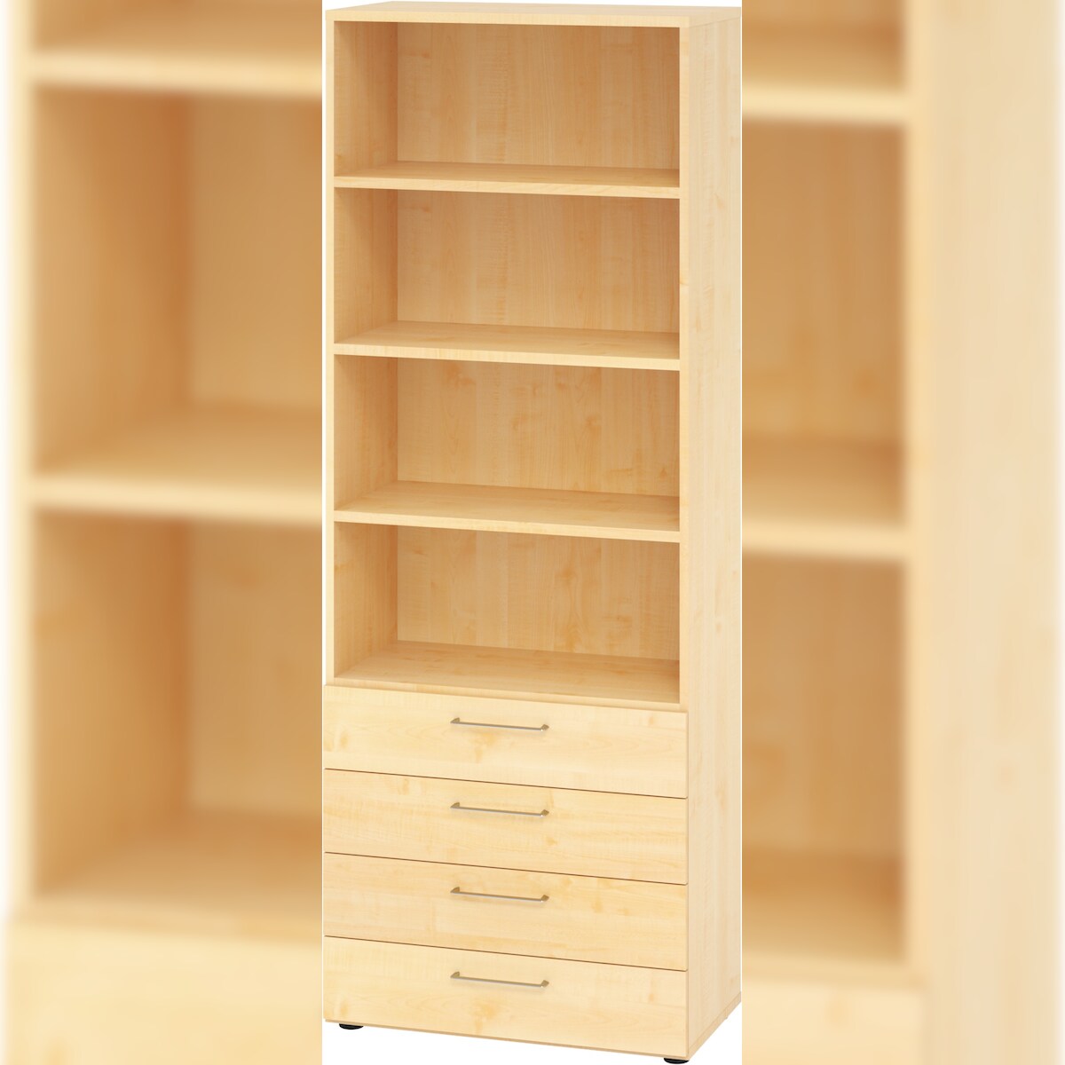 bümö smart Schubladenschrank, Büroschrank 80cm breit in Ahorn mit 4 Schüben & 4 Regalfächern - Bürocontainer aus Holz, Container mit Metallgriffen &