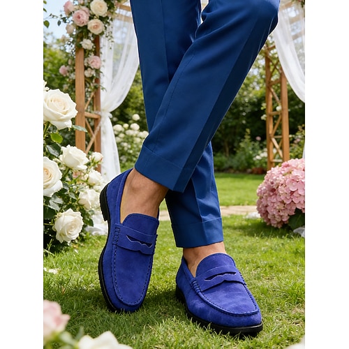 mocassini da uomo in vera pelle: eleganti mocassini slip-on in pelle di vacchetta blu per matrimoni ed eventi semi-formali