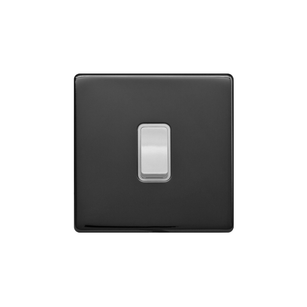 Lieber Black Nickel & White 20A 1 Gang Double Pole Switch - Screwless - Size: 86mm x 86mm x 2.1 mm