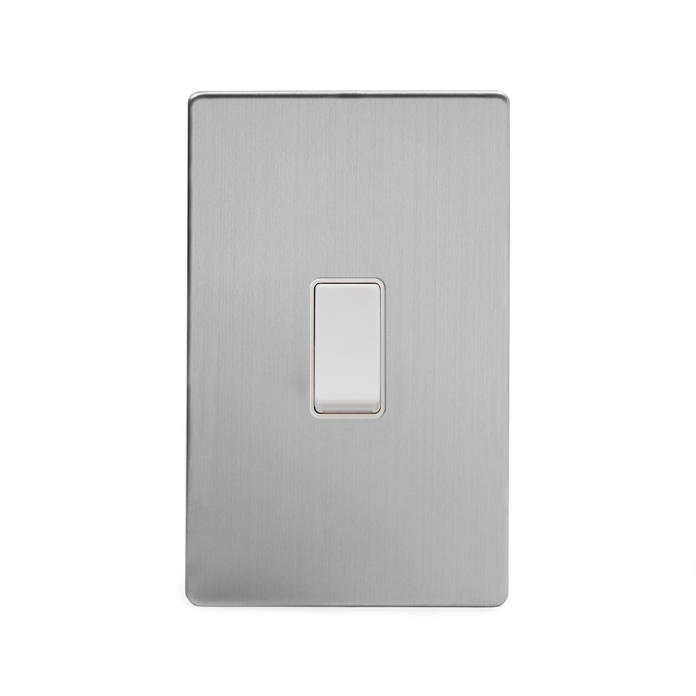 Soho Lighting Brushed Chrome 45A 1 Gang Double Pole Switch Double Plate Wht Ins Screwless - Size: 86mm x 146mm x 4.5mm