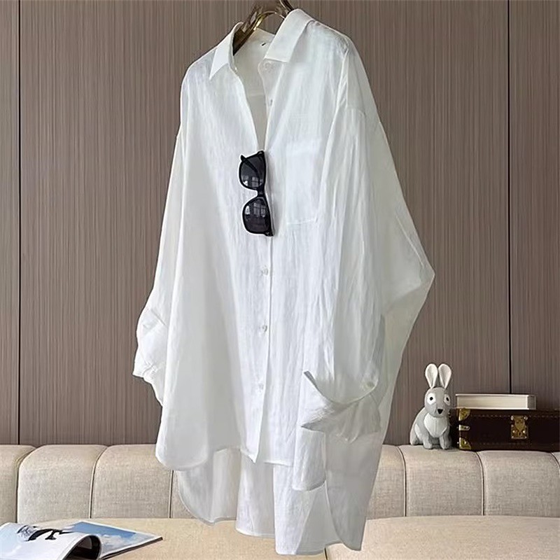 Women's Shirt Cotton Linen Shirt Daily Stylish Casual Long Sleeve Shirt Collar White Spring Fall