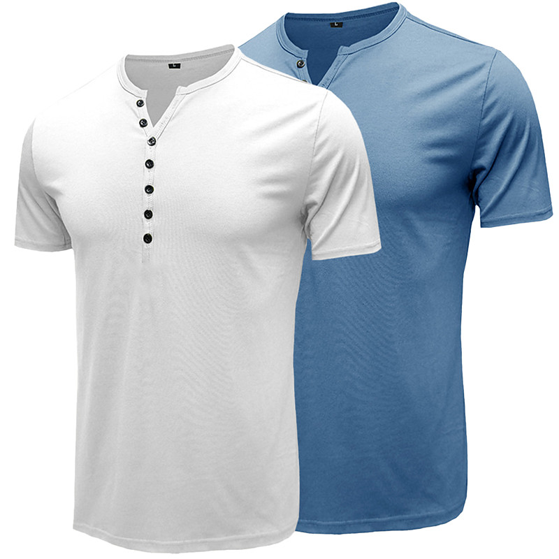 Men's Henley Shirt Henley Top Cotton Blend T-Shirt Short Sleeve Solid Color Plain Vintage Casual Basic Henley Outdoor Causal Casual Spring Fall Spring Fall 1# 2# 3# Henley T-Shirt