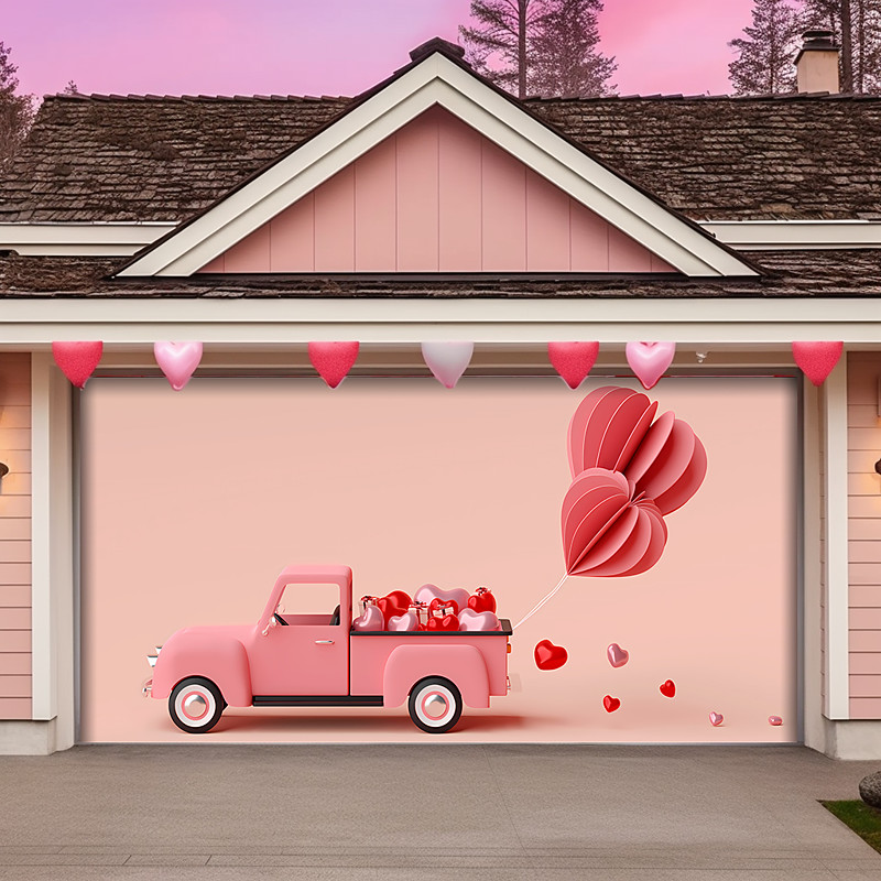 Valentine's Day Garage Door Cover Large Hanging Backdrop Love Heart Vintage Romantic 3D Party Outdoor Shooting Backgrounds Front Door Home Decor