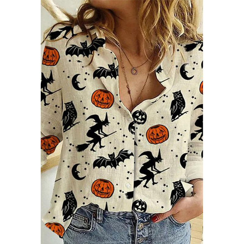 Women's Shirt Skulls Print Button Down Tunic Shirt Collar Long Sleeve Graphic Vintage Tropical Daily Regular Tops Work Daily Holiday s Print Red / black Black White Orange Green Spring